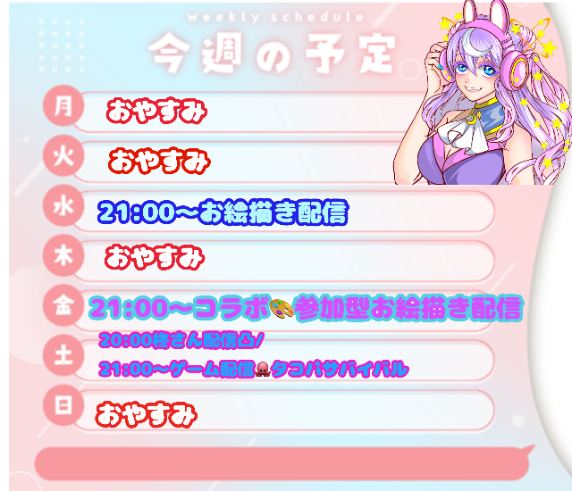 今週のスケジュールだよ( ᐛ👐)✨